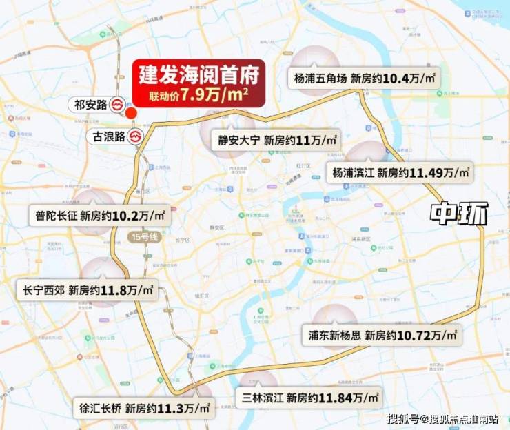 相比之下,联动价仅约7.9万/㎡的桃浦15号线地铁房——建发海阅首府,俨然是整个中环肉眼可见的价格洼地!