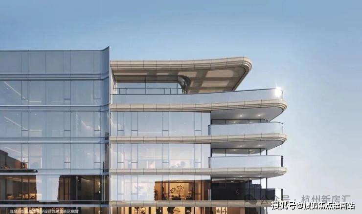 12栋13-16F建筑交错排布,楼体的高差延伸为波涛起伏的天际线,璀璨壮阔如不息的江潮。摒弃当下的流行,杭序府在建筑立面上采用非对称设计,并精心打造形如疾风卷浪的横向线条,配合标志性建筑中部折线“凌云翱翔”以及折角飞檐“桂冠江河”,再次刷新作品的艺术张力。