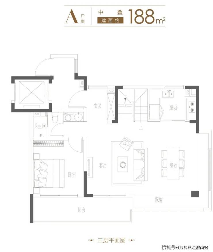 上叠带露台及阁楼,北露台约10㎡,南露台约17㎡,阁楼约40㎡