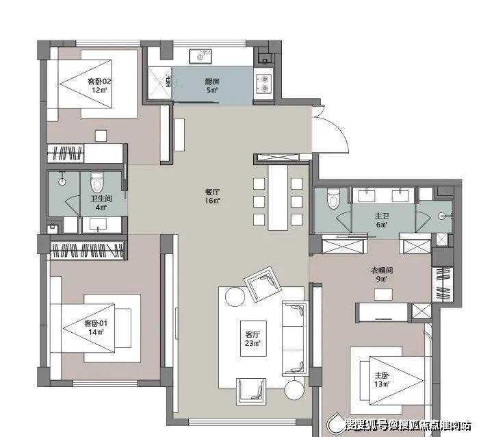 面积段:50㎡-75㎡-160㎡