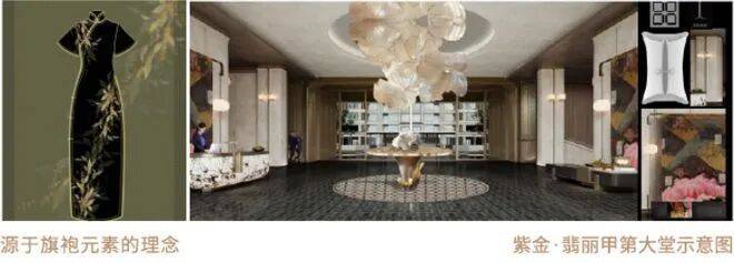 入户大堂墙面的装饰柱从传统旗袍的吸取灵感,展现东西融合的文化内涵。