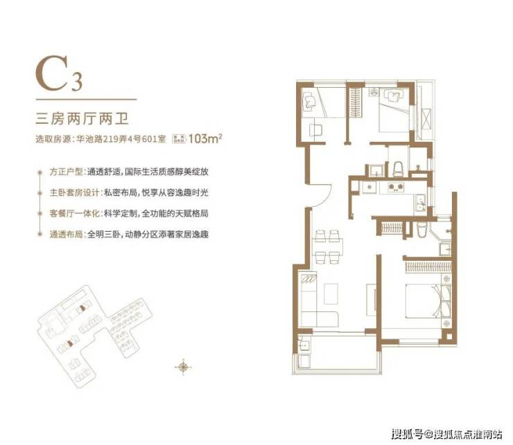 户型设计灵动,目前开放了104㎡3房2厅2卫和103㎡3房2厅2卫样板间,可谓是各有看点: