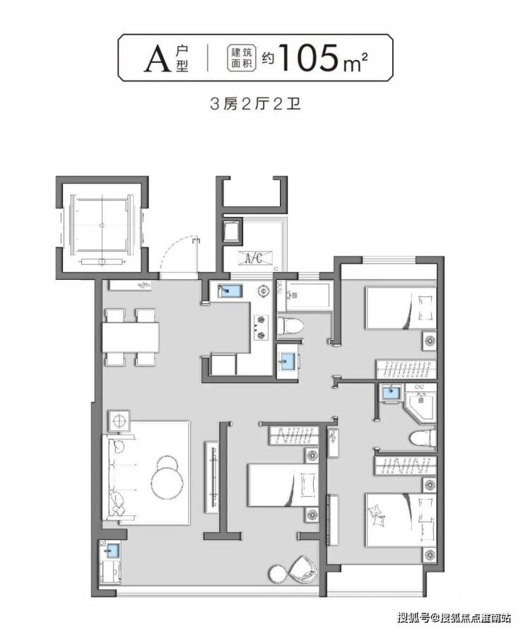 户型:主力105-151㎡三至四居,毛坯交付,得房率75%。