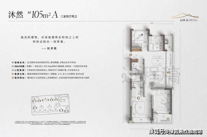建面约105m²的户型有近6m的纯屏巨幅玻璃,大大提升了采光和观景的需求,“起床就能看到风景”。