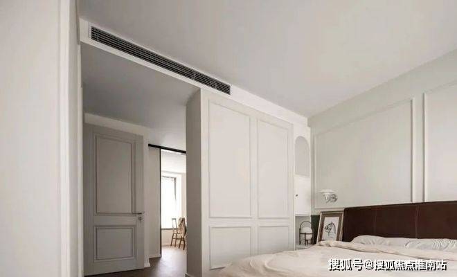 ▲ 床侧一组收纳柜做隔墙,柜体开合之间留出床头柜的功能