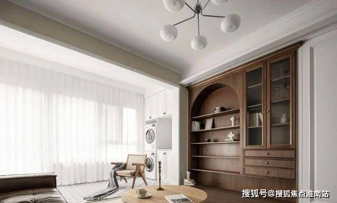 ▲ 定制的黑胡桃木柜体,以纯粹的木质表情营造温润的高级质感,阳台的角落依旧保留家政功能,实现生活与休闲的完美平衡