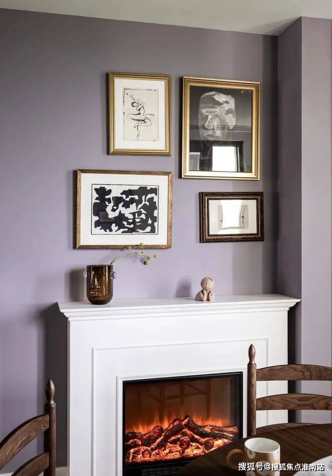 ▲ 餐厅一角利用电子壁炉、复古装饰画、摆件等用心装饰,成为家中仅次于客厅的第二活动中心