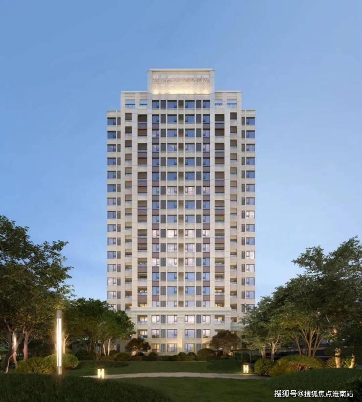 ①项目高层采用大都会装饰主义风格,底部石材立面,上层真石漆,颇具品质感。