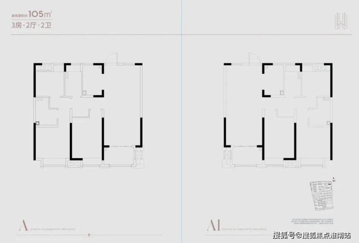 建面约105㎡3房2厅2卫,非常标准的动静分离、三开间朝南户型。