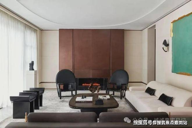 白色的沙发,搭配圆形茶几,黑白色调的搭配让空间显得有力而不张扬。