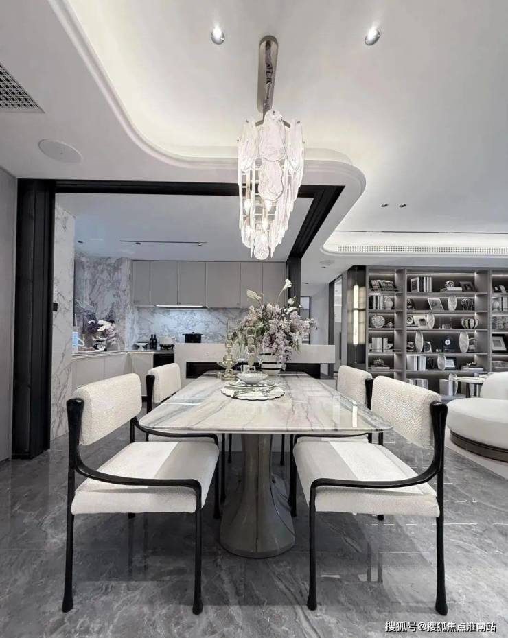 进门之后,恍若走进一幅立体绽放的画卷。地面采用了石材拼花,纹理如行云流水般舒展,在光影交错间勾勒出 低调的奢华。