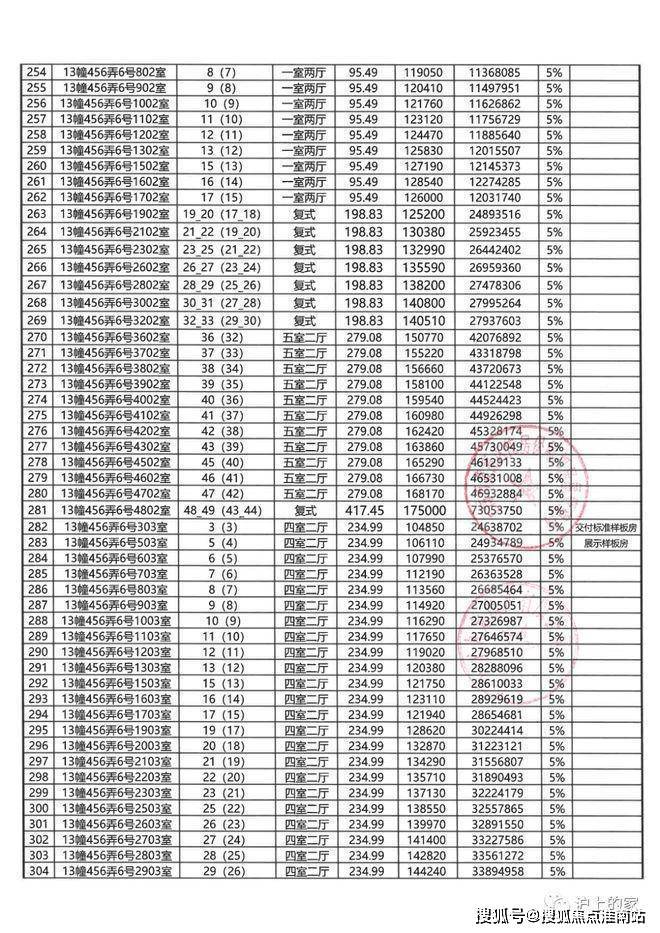 住宅3#楼建面约95-281㎡,主力户型有217-237-275-280-281㎡,最新全套户型图如下: