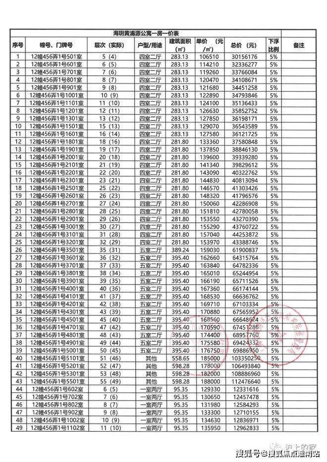 上期一房一价供参考: