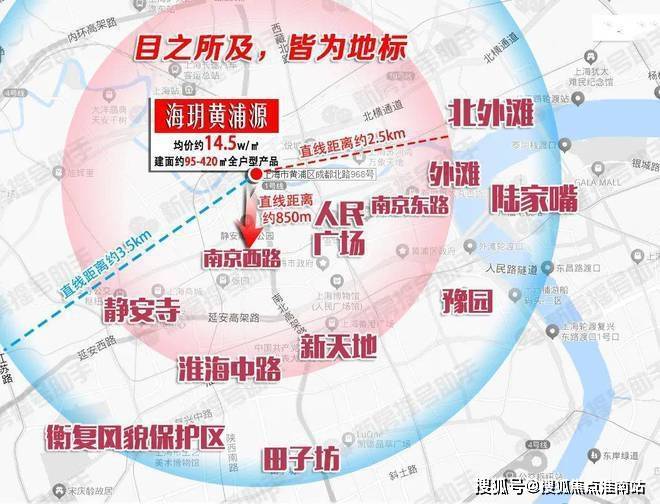 视野扩大,「海玥黄浦源」拥有的则是上海市中心顶层生活配套资源,与南京西路直线距离仅约850m;直线距离约2.5公里之内,覆盖了外滩、人民广场、静安寺、新天地等顶层商圈;与陆家嘴、北外滩直线距离在约3.5km内,目之所及,皆为地标,在当下豪宅市场没有对手!