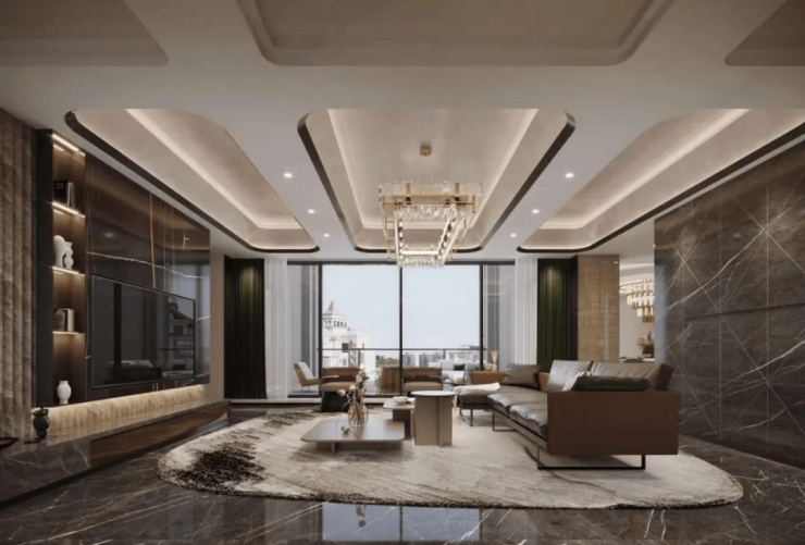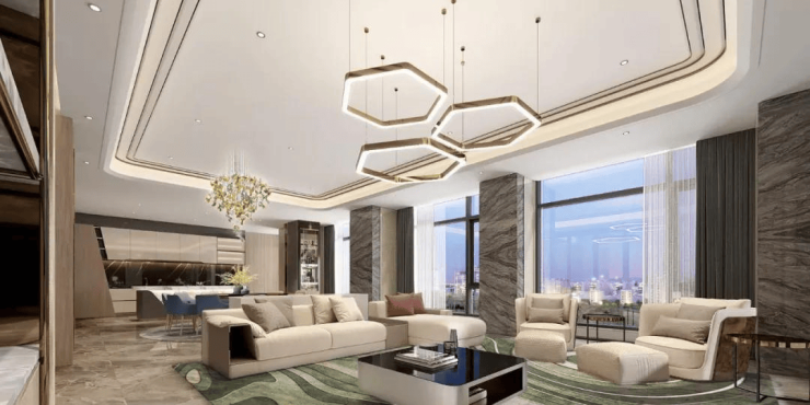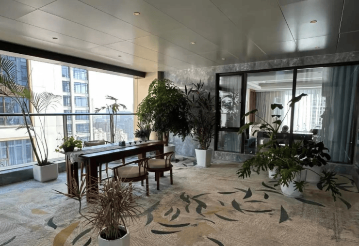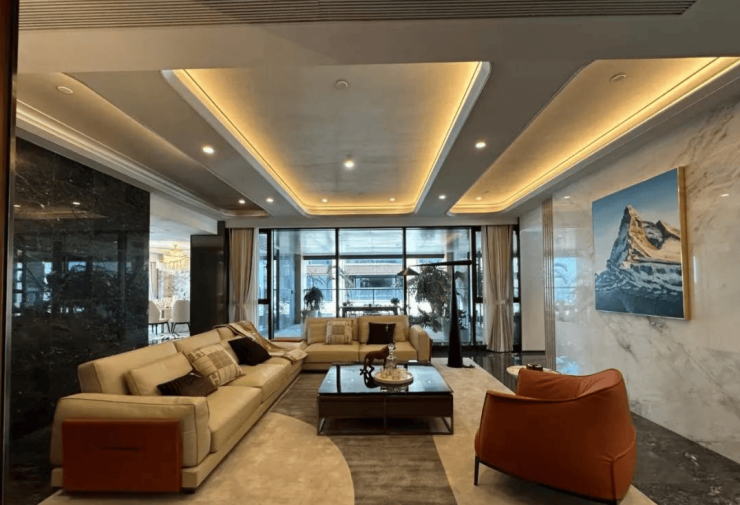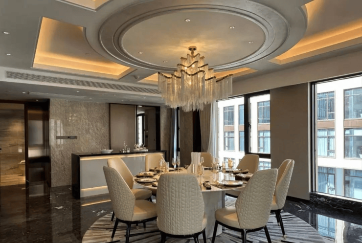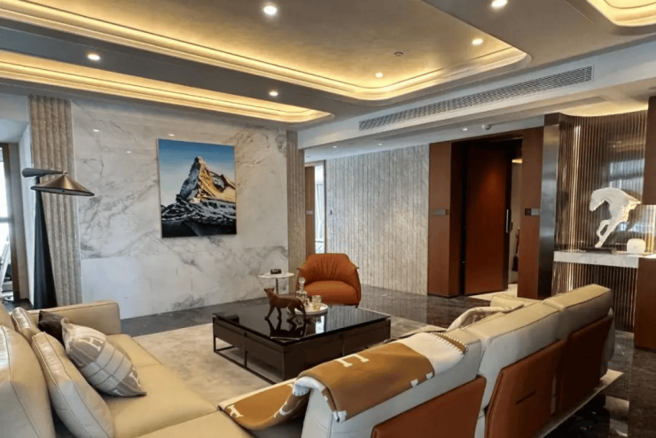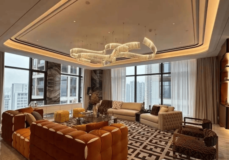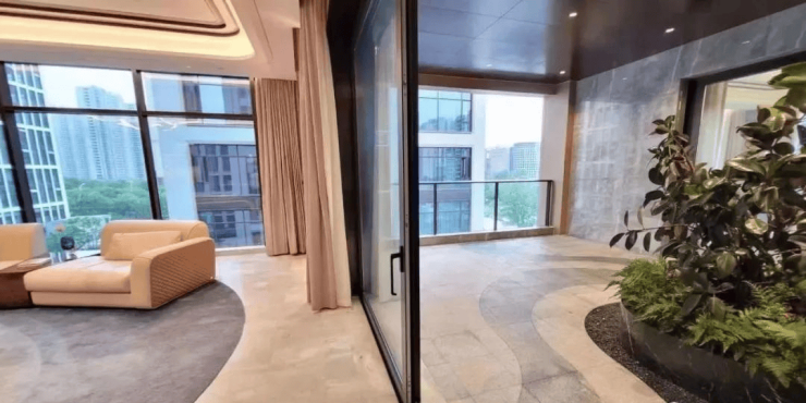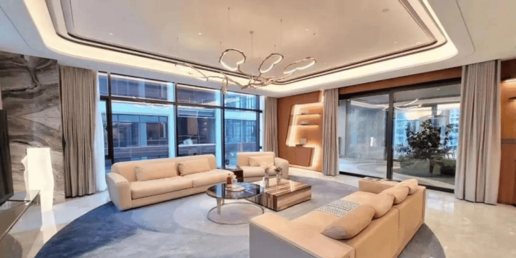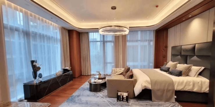 480㎡顶跃 / 大平层:6 房 2 厅 6 卫,层高 3.3-4.1 米,270° 环幕江景