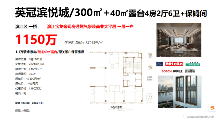 蓝城英冠滨悦城:推出一套300平,总价仅1188万超高性价比房源,赠送40平大花园