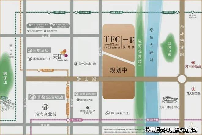 狮山路、三香路、中新大道三条主轴,汇聚全城价值所在。