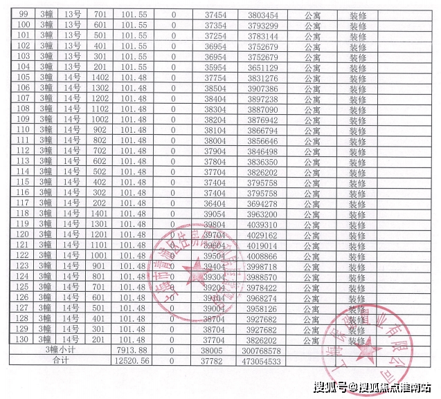 一房一价表: