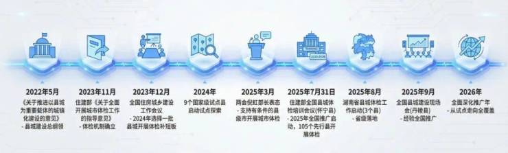 县域层面,县城与县级市体检更是进入快速扩面阶段,2025年已迅速扩至105个先行县、150个县级市,最终将覆盖全国1301个县城与397个县级市。这既是国家以县城为重要载体的城镇化战略落地,也依托从顶层设计到省级落地的完整政策链条,加之2025年全国两会明确的“体检找问题、项目解问题”城市更新联动思路,让城市体检兼顾城市形象与民生保障,成为城乡建设的重要工作抓手。