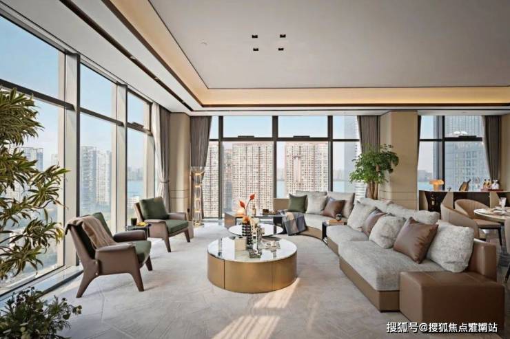5层以上房源采用两梯一户的私密入户设计,在提升整体的氛围感的同时,也保证了客户的隐私;LDK的横厅设计则串联了餐客厨的空间,提升了公共空间的豪宅质感;而采光面长达约54米的全景落地长窗配上约4.19米的层高,更是让横向纵向的空间感达到了极致,让整座城市仿佛静立脚下……