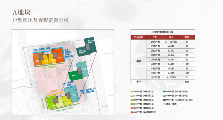 A地块:约5.45万㎡高层产品,共150套,套均面积364㎡;