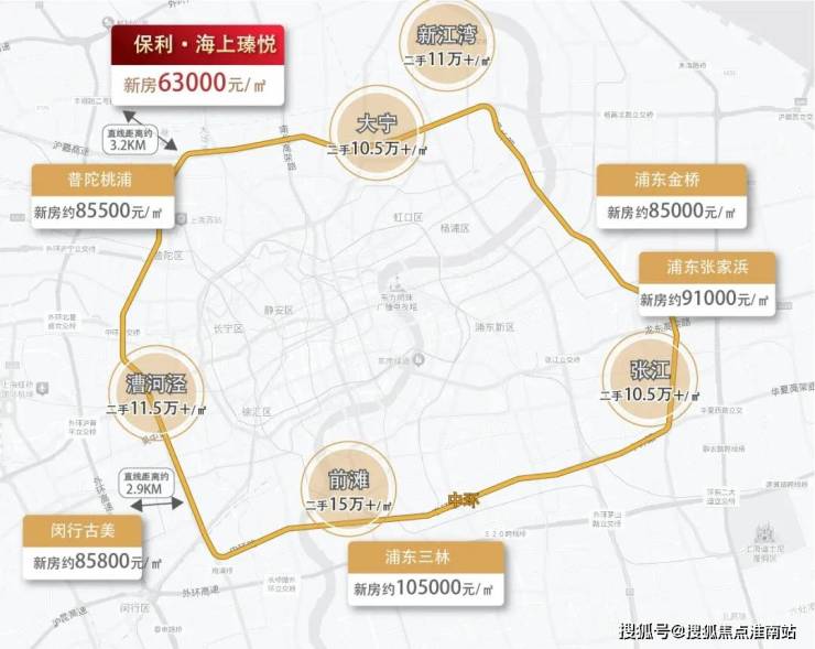 同环线对比,普陀桃浦新房已8.55万/㎡、闵行古美新房约85800元/㎡、浦东三林新房已达105000元/㎡,漕河泾已达二手11.5万+/㎡、前滩二手已达15万+/㎡。