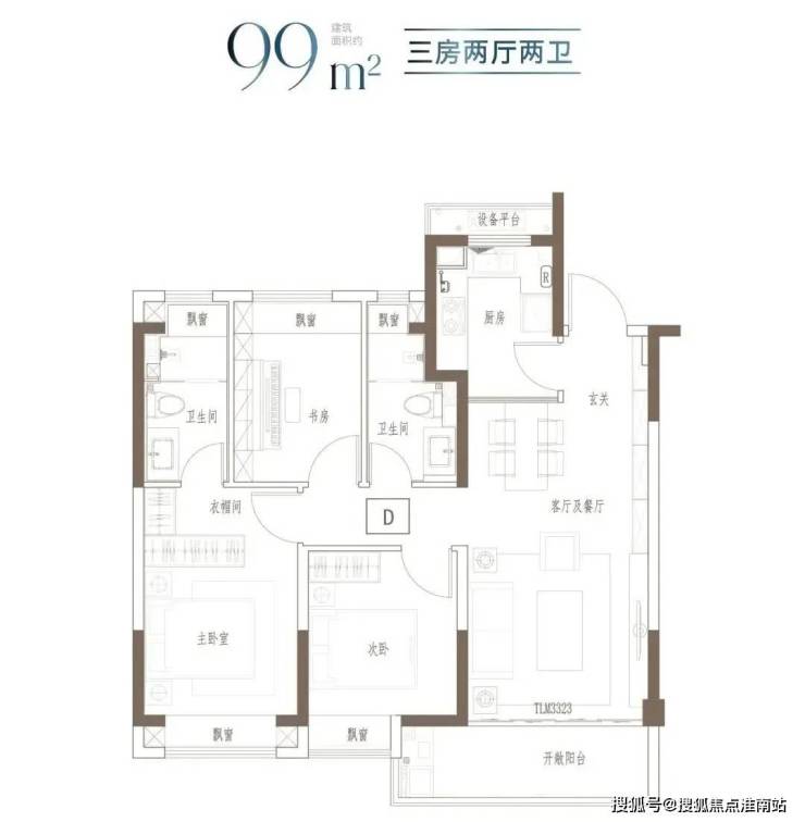 建面约91㎡-121㎡ 3房2厅2卫;这几个户型都是3房的设计,满足想一步到位的购房者。3开间朝南+客餐厅连通阳台+全卧室飘窗,以及套房式主卧设计+2卫,即使是三代同堂,也能让生活从容。