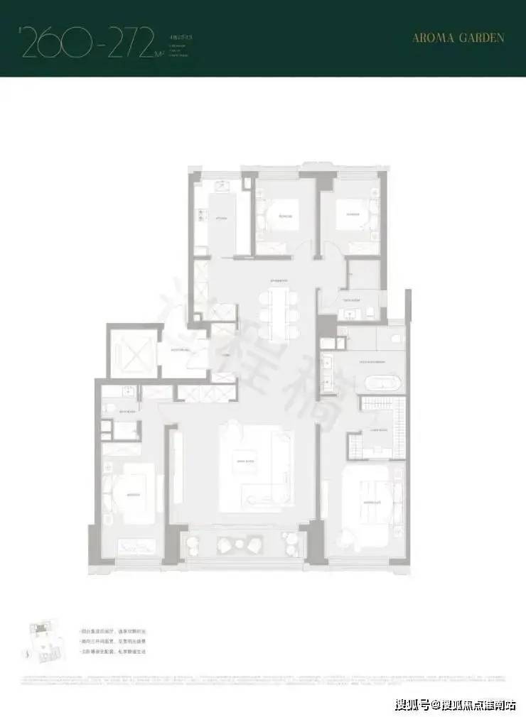上海黄浦露香园·天誉售楼处电话☎:400-9966-224(预约看房热线)建面约260/272㎡,南向双套房,尤其主卧是豪华套房,带独立衣帽间,卫浴间含双台盆+淋浴+浴缸+马桶四件套。