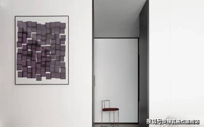 私密场域依旧保持静谧,黑白色基础上搭配了更多的色彩,例如深棕、浅紫等,艺术品的衬托深邃迷人,热络了家的氛围。