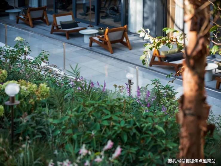 来到后场区域,设计希望将上部与下部空间通过大地造景手法,将公区景观融合进下沉庭院,使上下空间成为一个整体。下沉庭院曲折蜿蜒的步道呈五折逐级展开,完成了空间序列的塑造,并通过精心设计的花境景观,将它做成了一个空间丰富、开合有度、生机盎然的“仲夏夜之梦”主题花园。