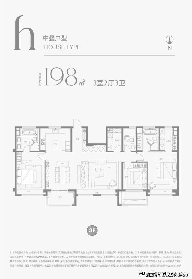 建面约198m²下叠户型图: