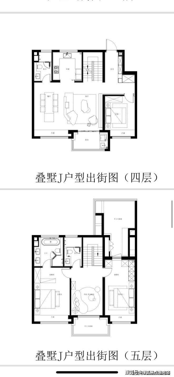建面约180m²上叠户型图: