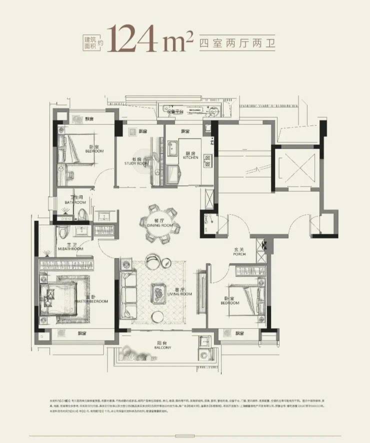 建面约124㎡的一步到位改善四房,三开间朝南设计,主、次卧互不干扰;南北通透的超大尺度公区,各种生活场景均可在此实现;得益于洋房产品属性,得房率会相对较高,功能性4房设计,无论是三代同堂或是二胎家庭即可容纳。