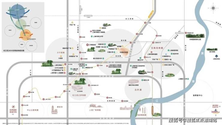 商业方面,江湾镇这个板块是宝山/静安/虹口/杨浦四区交界处,板块“左邻右舍”都是比较热闹的商圈——西面市北高新+协信、北面高境+宝山万达、东面杨浦五角场,南面虹口曲阳+四川北路商圈。
