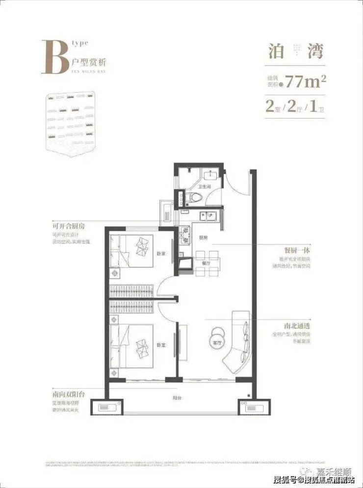 【高层77平】6.7m大面宽双阳台,180º东西向全境观海,户型方正,南北通透!