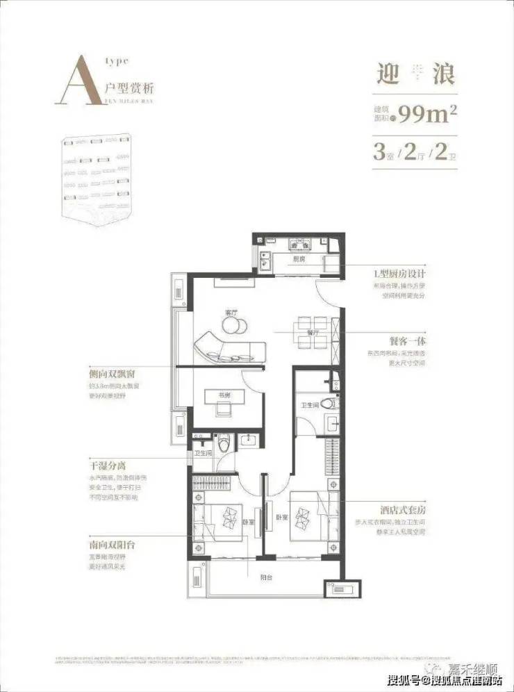 【高层99平】约6.1m大宽面双阳台,近6m客厅观海飘窗,奢享270º三面海景,主卧套房设计,N+1灵动空间!