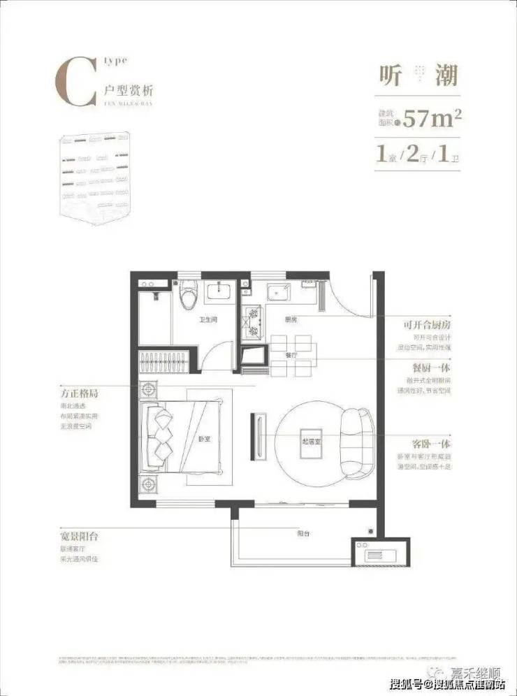 【高层55平】约6.25m宽景南向观海,酒店式套房设计,户型方正,南北通透!