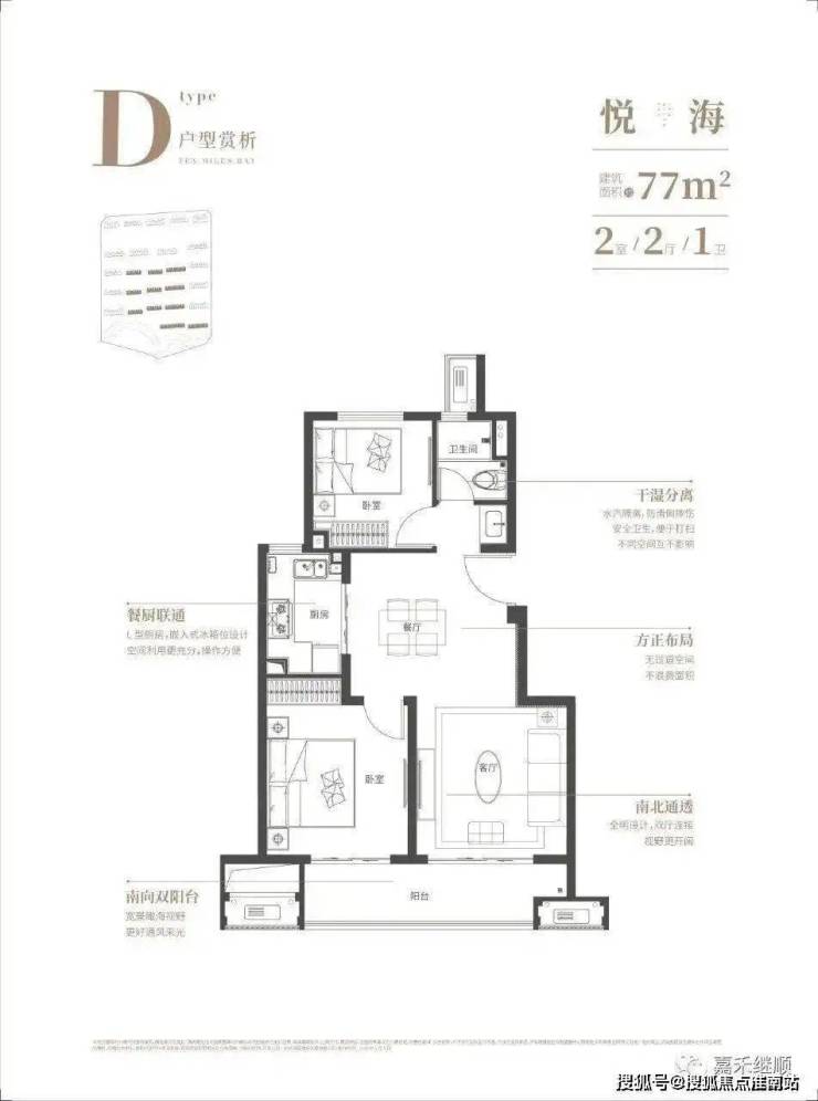 【洋房77平】约6m大宽面双阳台,干湿分离,方正布局,南北通透!