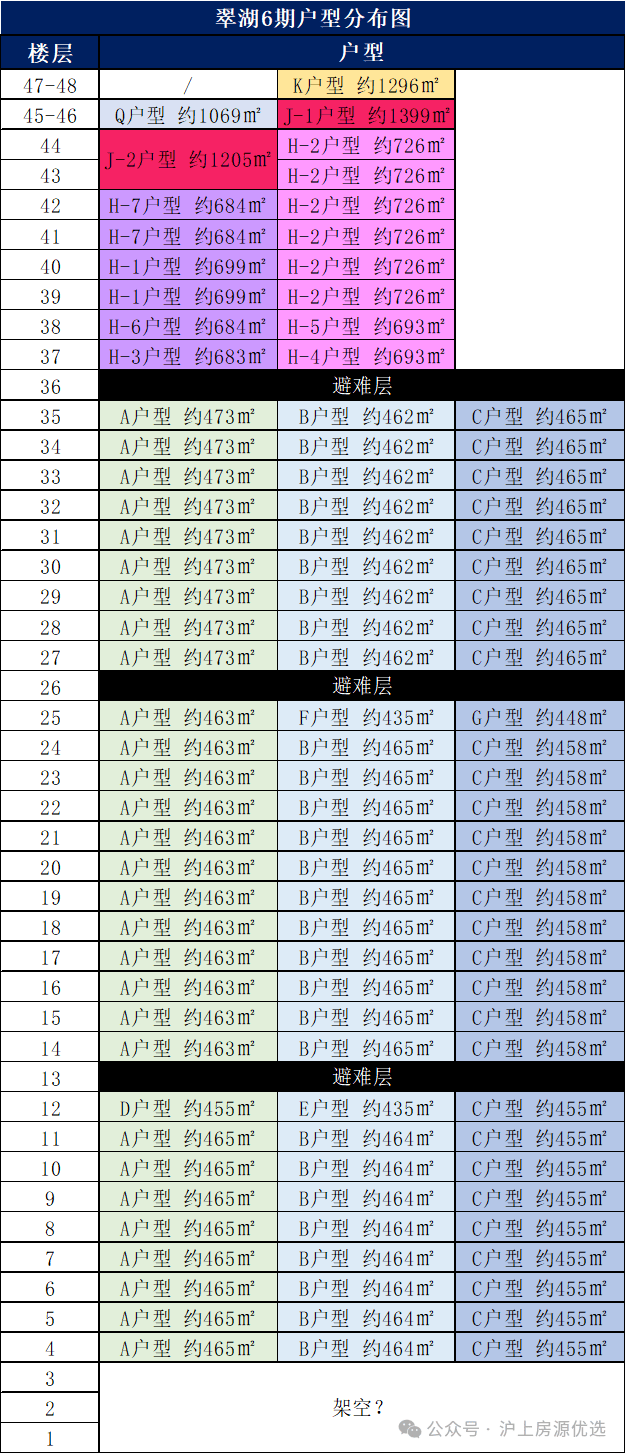 6期的得房率在73-74%左右。共48层、总高度180米的超高层住宅分被为高区和低区两部分。35层以下是一层三户,35层以上是一层2户的大平层以及少量的顶复户型,并且层高全部在3.6米。