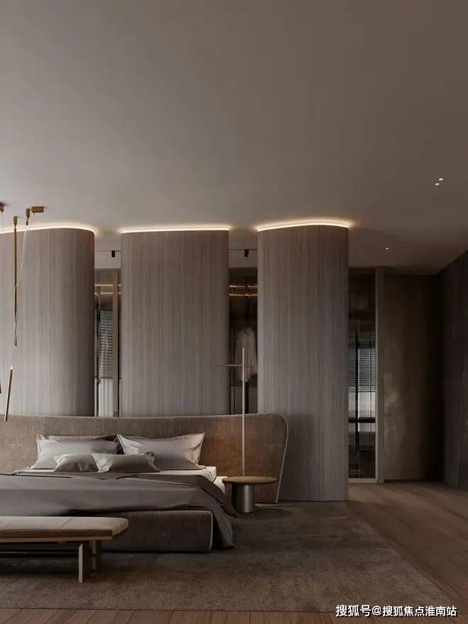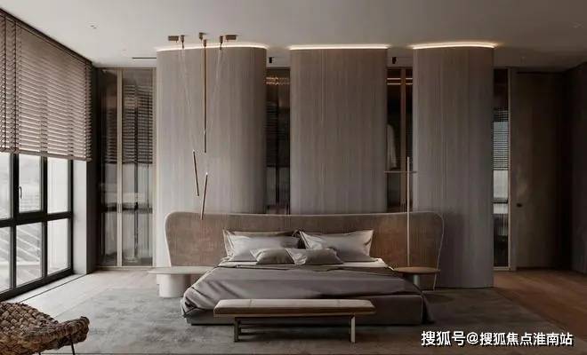 卧室空间设计得非常宽广,大面积的落地窗,给整个卧室带来了充足的光源。