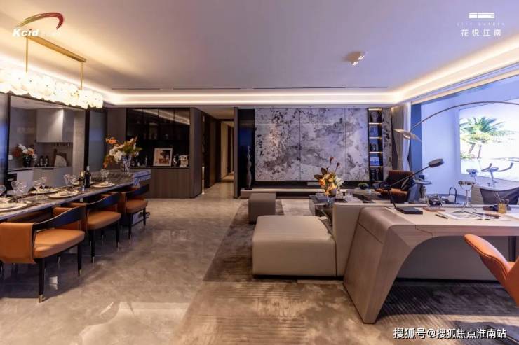 花悦江南四开间朝南,约13.2m南向阔境,让客厅、餐厅与阳台联动,可创变家庭影院、社交派对、亲子游戏等,多种空间组合随心切换。