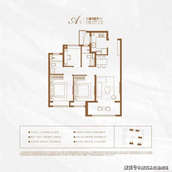 建面约107㎡三房的户型,三开间朝南,大面宽阳台,餐客厅一体,还有精细化收纳体系,人性化细节设计,极具功能性与舒适性,满足高阶精致生活。
