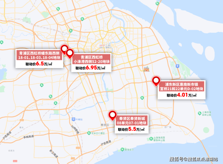 这些宅地中,惠南距离轨交很远、并且整体地段也并不出色,所以联动价只有4万+。但其余的低密地块中,即使是奉贤新城,也有约5.5万/㎡的联动价。徐泾的低密住宅,联动价更是逼近7万。