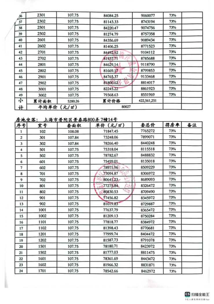 一房一价表: