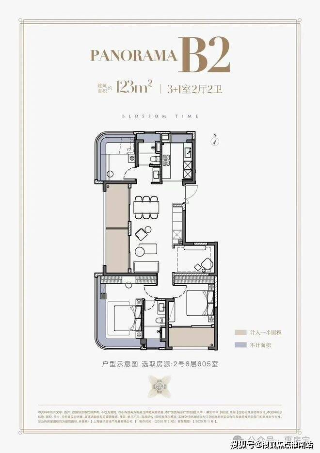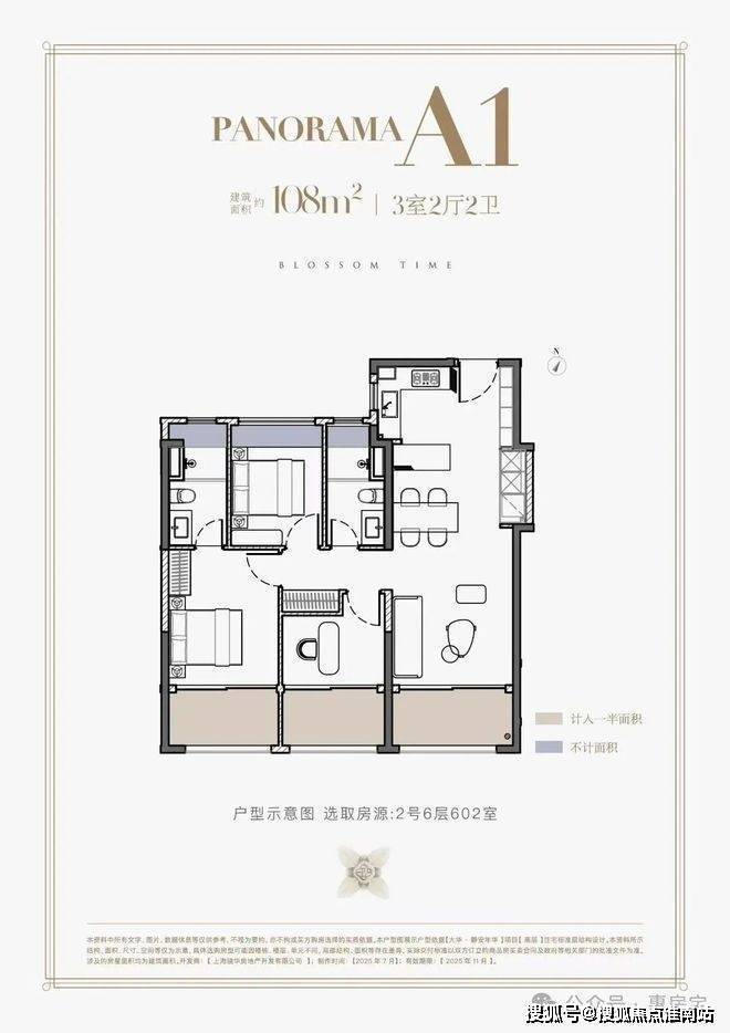 高层建面约108㎡和123㎡两种户型,均采用这一突破性设计,相较于此前和樾长宁120㎡双阳台设计,实现质的飞跃。