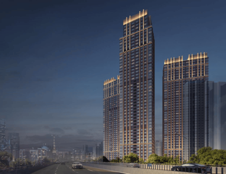 从效果图看,海玥黄浦源通过 古铜色、深灰色+铝板、镜面铝板的完美搭配,再镶嵌竖向线条和立面层次 ,体现出威仪肃穆的高级感。