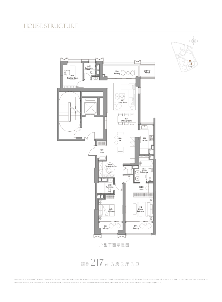 217㎡3房:总价约3100-3300万