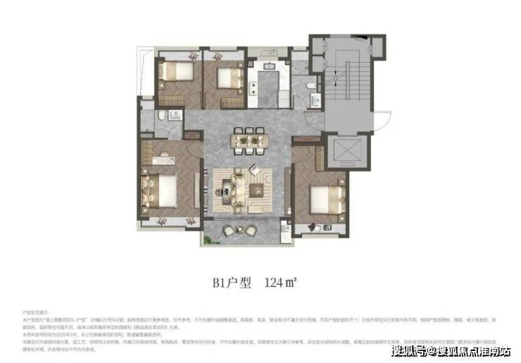 洋房平墅化:建面约108-124㎡精工洋房,以建面约124㎡四室洋房为例,超大餐客巨厅、独立主卧套房、独立书房,户型布局媲美平层别墅。可分可合厅房、全卧飘窗巧思,延伸日常生活的想象。