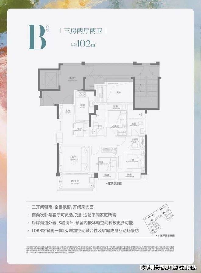 建面约102平3房2厅2卫(边户)金地嘉峯汇售楼处电话☎:400-965-9259【已认证】