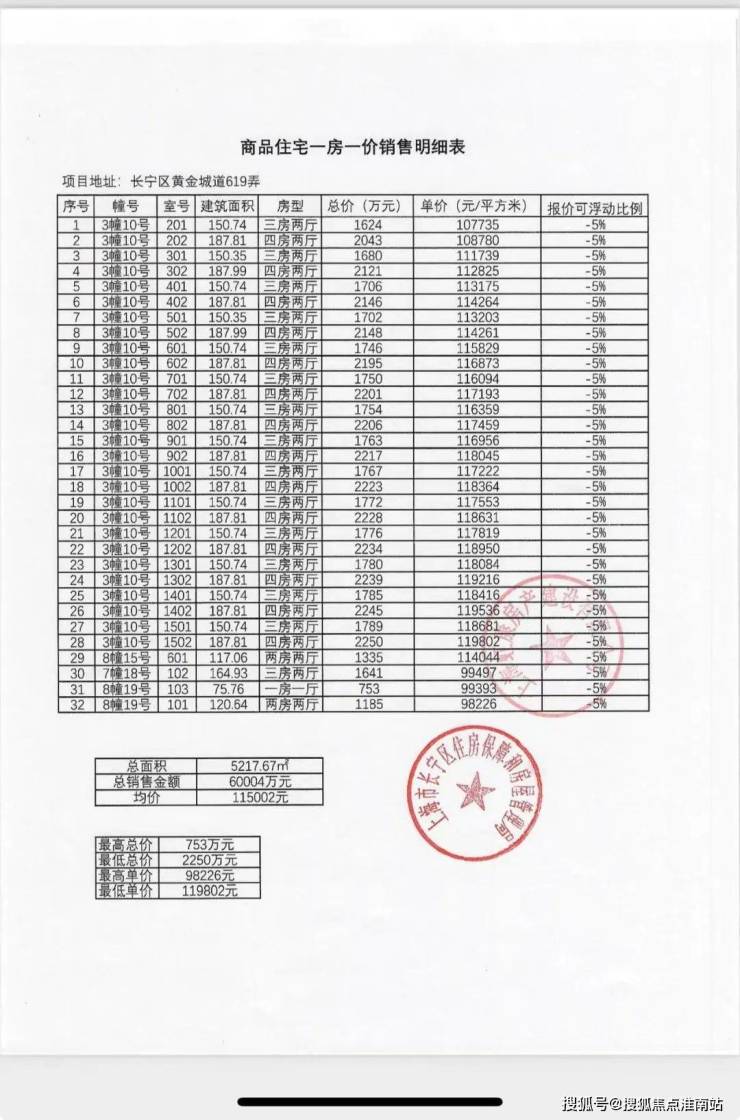 一房一价如下